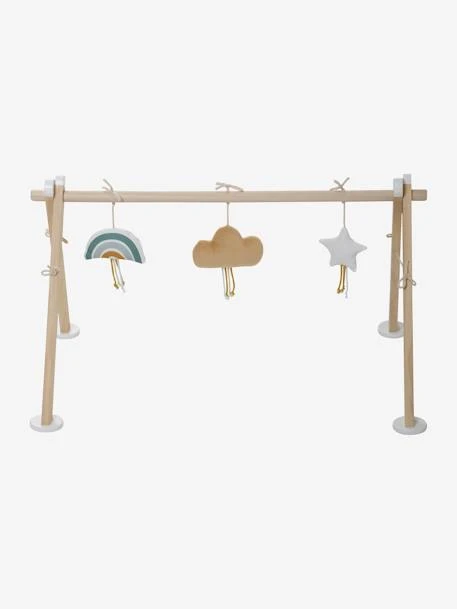 Un adorable portique en bois avec ses 3 jouets suspendus, paré à émerveiller vos petits explorateurs. Associez-le avec un joli tapis de sol ou tapis d’éveil afin de lui offrir un petit coin douillet pour s’éveiller !