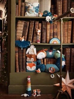 - Petits jouets accrochés : 1 cerf avec billes à l’intérieur, 1 lapin avec billes à l’intérieur, 1 renard avec lien vibrant, 1 champignon pouet pouet